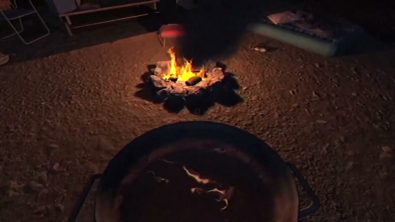 Durante a narrativa, você descobrirá um incêndio no acampamento. Localize e use o extintor de incêndio para apagar as chamas completamente, cumprindo suas responsabilidades como guarda florestal.