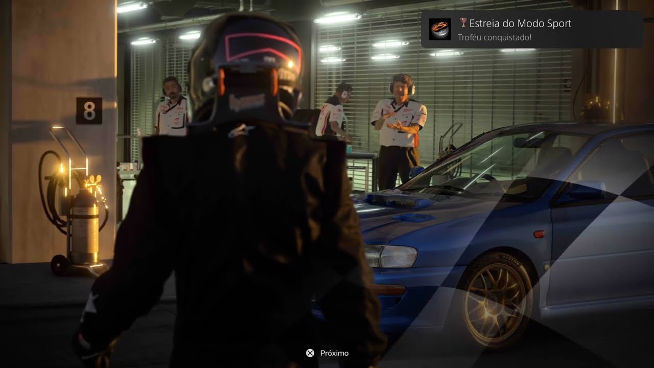 O Modo Sport é onde GT7 mais brilha para quem gosta de competição limpa — o sistema de carros padronizados elimina qualquer vantagem de garagem e coloca todos no mesmo nível técnico. A experiência que você descreveu é exatamente a proposta: entrar no aquecimento, aprender a pista, largada real e resultado baseado apenas na pilotagem. O Driver Rating e o Sportsmanship Rating atribuídos após a primeira corrida são valores que crescem conforme mais corridas são completadas com conduta limpa — sem colisões intencionais ou abandonos. Para quem busca a platina, o Modo Sport também é necessário para o troféu Sport Pro, que exige atingir o Driver Rating B — o que representa um volume considerável de corridas e tempo de pista online.
